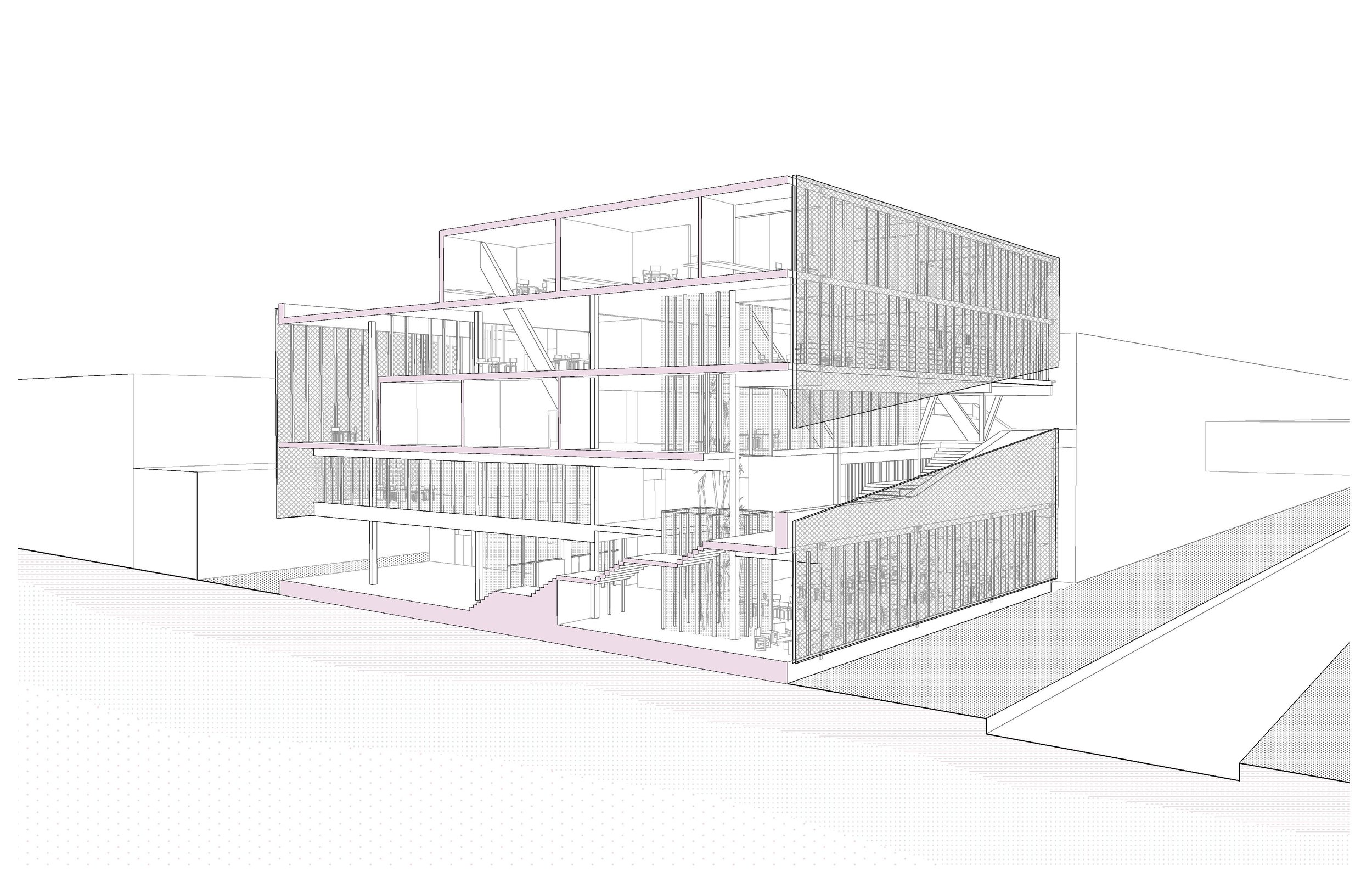 A mixed use office building proposal for Prospect New Orleans, the hosts of a triennial arts exhibition in the city. The design creates a building that continually performs as an exhibition space while meeting user demands.